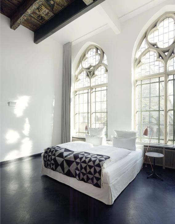 科隆都市阁楼酒店(Urban Loft Cologne)以紧凑现代的风格重新诠释了经典的20世纪艺术家阁楼。客房内白墙红砖、拼花木地板、柔和的粉彩色调与引人注目的艺术品相映成趣,将工业风的锐利感与温馨舒适感完美融合,窗外科隆大教堂的哥特式尖顶更将这般景致装点得如画。浴室采用时尚的地铁砖,更添一抹精致韵味。